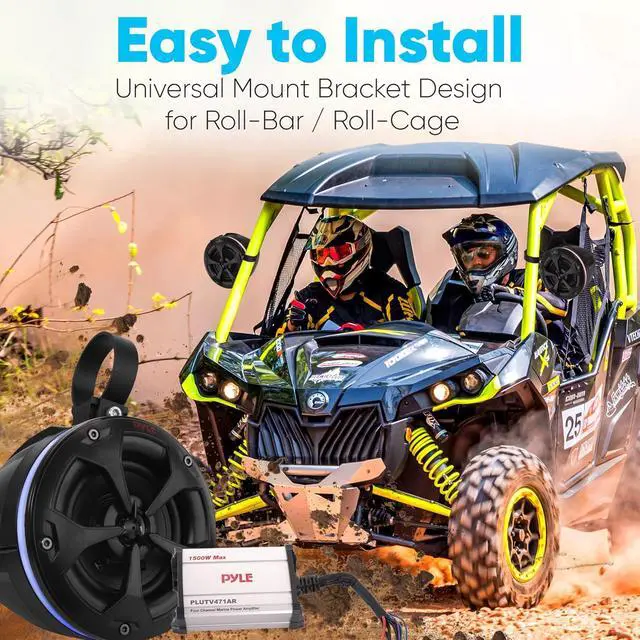 AMPLIFY YOUR RIDE: Pyles 800W dual marine grade off-road speaker kit is what you need to listen to high-quality audio on your boat, ATV, UTV, quad, Jeep, other outdoor vehicles! Includes (4) 4 2-way off-road speaker system along w/ marine amplifier