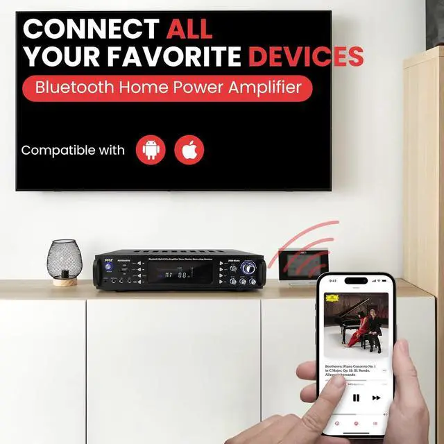 BLUETOOTH ENABLED: The integrated hybrid amplifier is equipped with Bluetooth for wireless music streaming. Works with todays latest devices including smartphone, tablet, laptop, computer, etc. Features a built-in 2.4GHz antenna for extended range