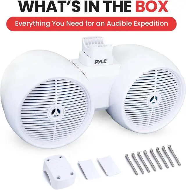 EASY MOUNTING, SECURE FIT - The wakeboard speakers mount system fits bars up to 2.35" in diameter. Includes brackets and all necessary hardware. Set up your wakeboard speakers waterproof system in minutes with a secure, vibration-resistant hold