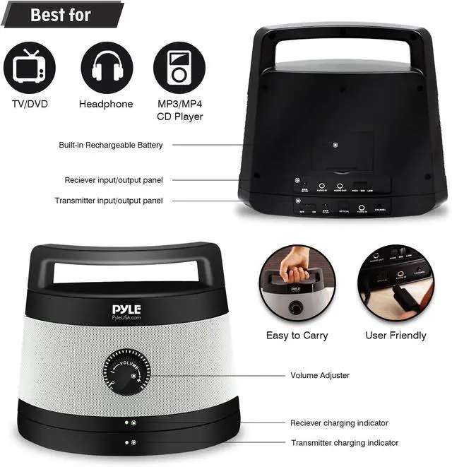 WIRELESS: Never miss a sound with the Pyle wireless TV speaker transmitter & receiver system! Great for anyone who struggles to find the optimum volume level on their TV, providing superb hearing assistance with a wireless range of up to 100 feet