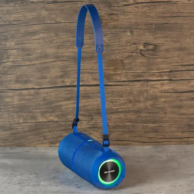 Sharp GX-BT390 Crystal Clear Series Bluetooth Speaker | Waterproof IP67 | 10 Hour Playtime | 2 Light Modes | 60W Max Power with Strong Bass | True Wireless Pairing | Hands-Free Calling | Strap | Blue