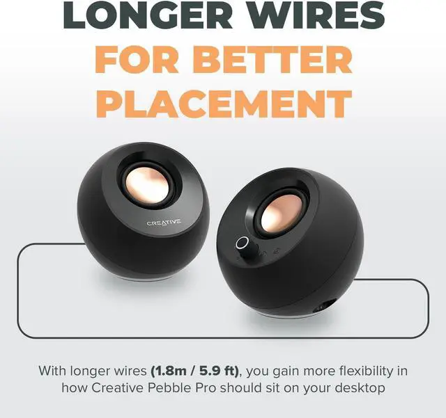 The end result is the engineering marvel that is Creative Pebble Pro--compact on your desk with capabilities to fire acoustics power of up to 10W RMS and peak power of up to 20W.