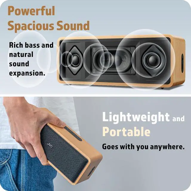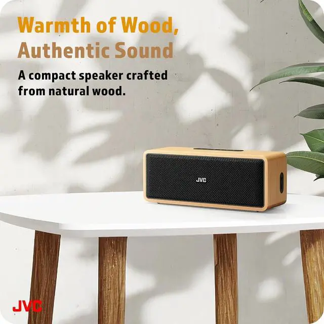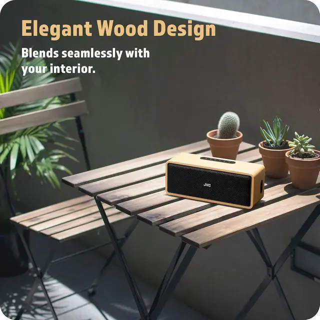 VINTAGE STYLE, MODERN USE: Turn heads with a speaker thats both tech and decor. With its genuine wood design, this JVC Bluetooth speaker fits stylish homes, retro offices, or minimalist setupsperfect for listeners who value aesthetics and functionality.