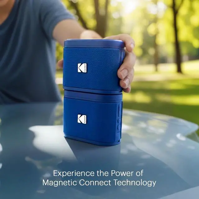 KODAK SOUNDBRIX Magnetic Splittable Bluetooth Speaker Shower Speaker IPX4 Water Resistant Ultra Portable Speaker Wireless 5H Playtime Electronics for Outdoors Home Travel Gifting Stackable Design Blue