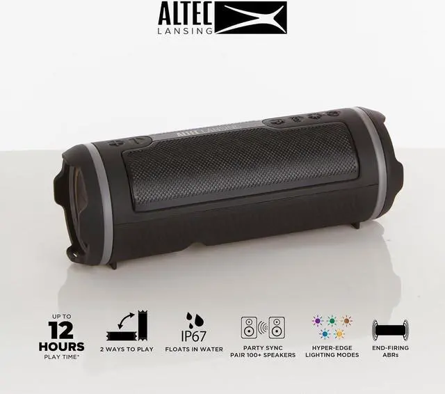 #MountIt #ClipIt Adventure-Ready Design Weatherproof Durability Features that will prepare you for every adventure IP67 EverythingProof HyperEdge LED light modes Adventure-Ready Design Equipped with versatile features that will prepare you for every adventure! The party just got better with Altec Lansing!