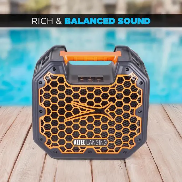 Rugged IPX5 Waterproof Design: Built for the elements, the outdoor speaker stands up to splashes, rain, and spills; perfect for poolside, camping, or beach sessions that last all day