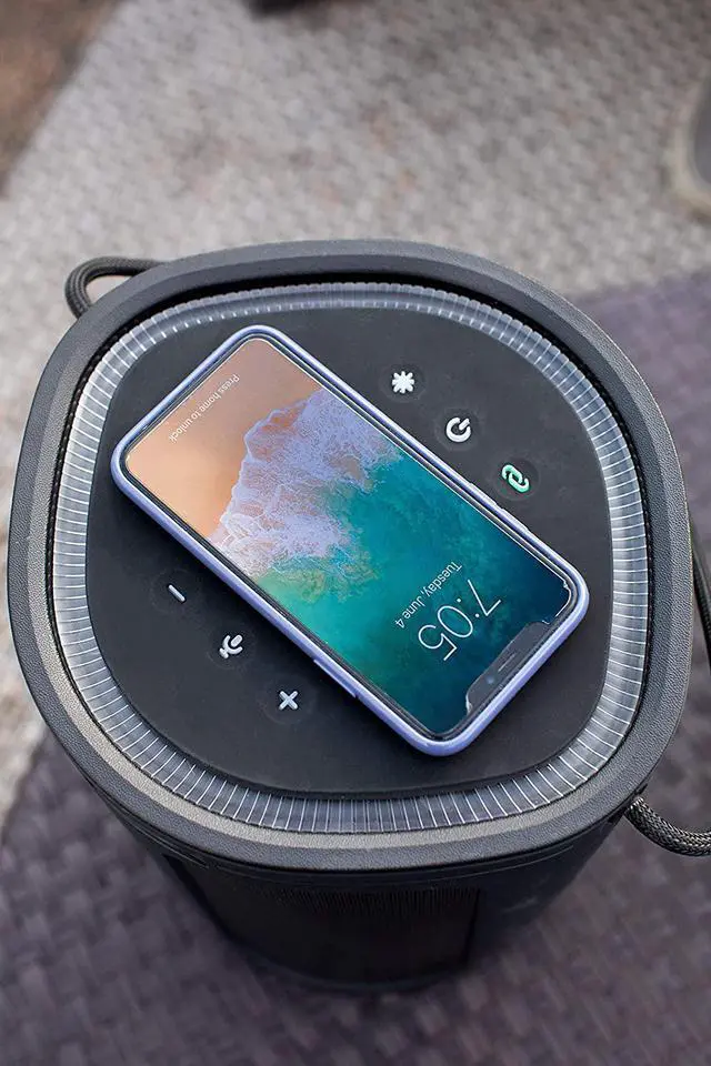BUILT-IN DEVICE CHARGER: Our Altec Lansing bluetooth speakers come equipped with built-in battery banks for your devices, giving you wireless QI chargers and USB chargers for your smartphone or tablet. With up to 20 hours of playtime, our blue tooth speakers portable power bank makes a great addition to any outdoor bluetooth speaker system! Whether you need rugged ATV speakers or portable pool speakers for summer, the SoundBucket XL provides portable speakers bluetooth users can take anywhere!
