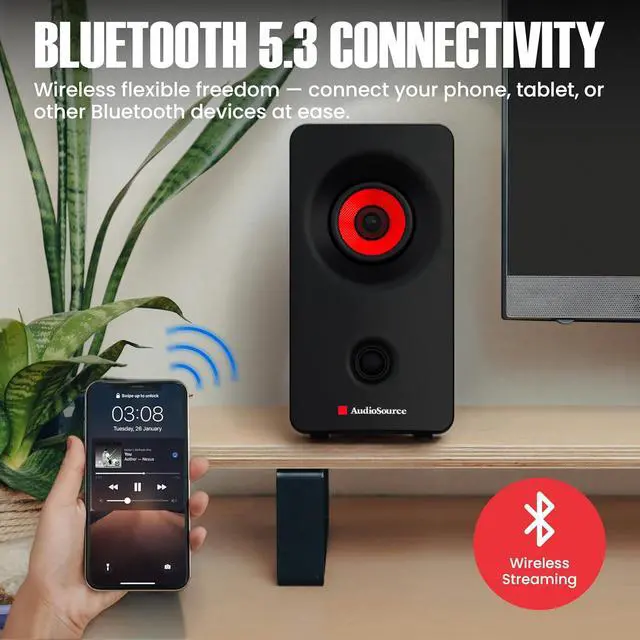 Clear, Powerful Stereo Sound Experience crisp, room-filling audio from dual 2" full-range drivers that deliver 6W RMS / 12W peak power. Perfect for everyday listeningwhether youre working, studying, or unwinding with your favorite playlists or videos.