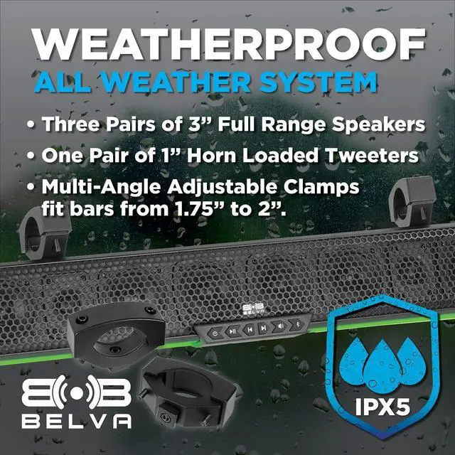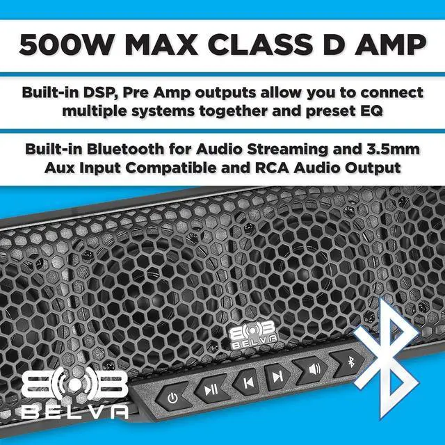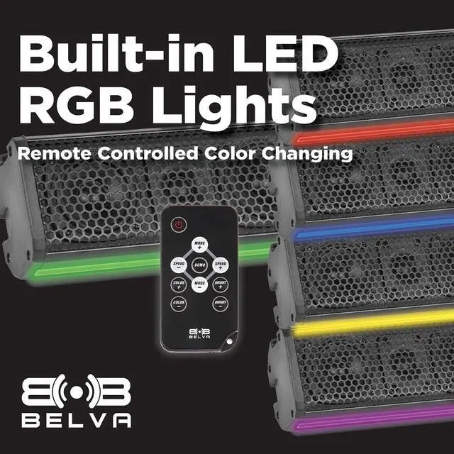 BELVA 27" 500W Weatherproof UTV/ATV/Powersports Bluetooth Soundbar with 8 Speakers and LED Lighting