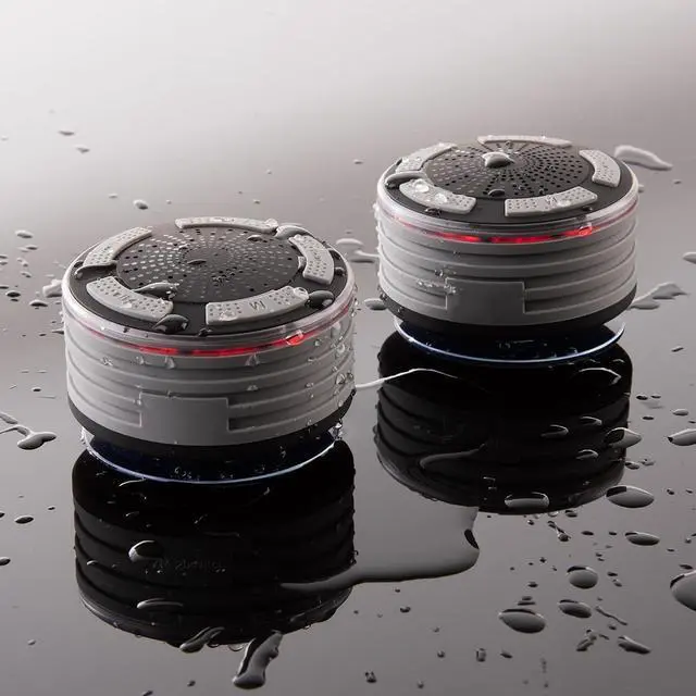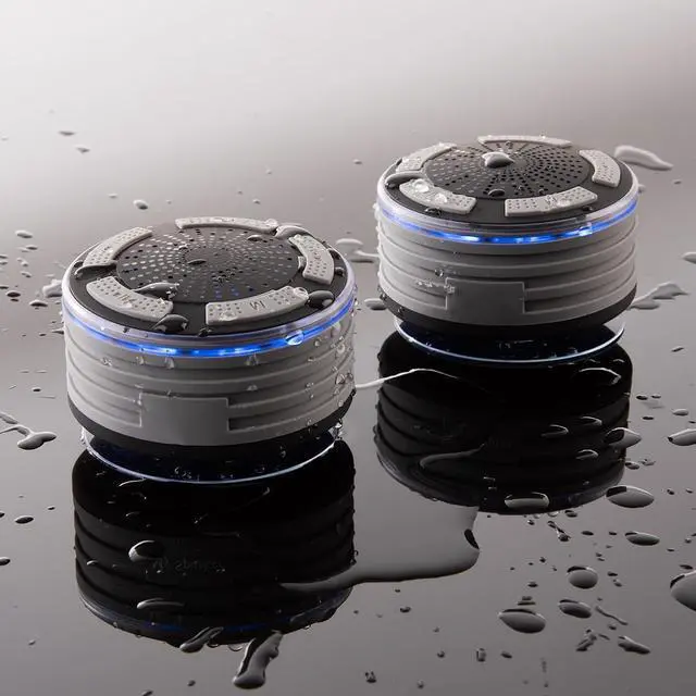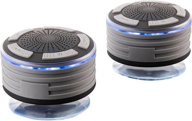 Twin 5-Watt Bluetooth speakers for rich sound Waterproof design with strong suction cups (IP67 rated) Onboard controls for music, volume, and calls Operates up to 8 hours per charge Compatible with iPhones, Android devices, and more