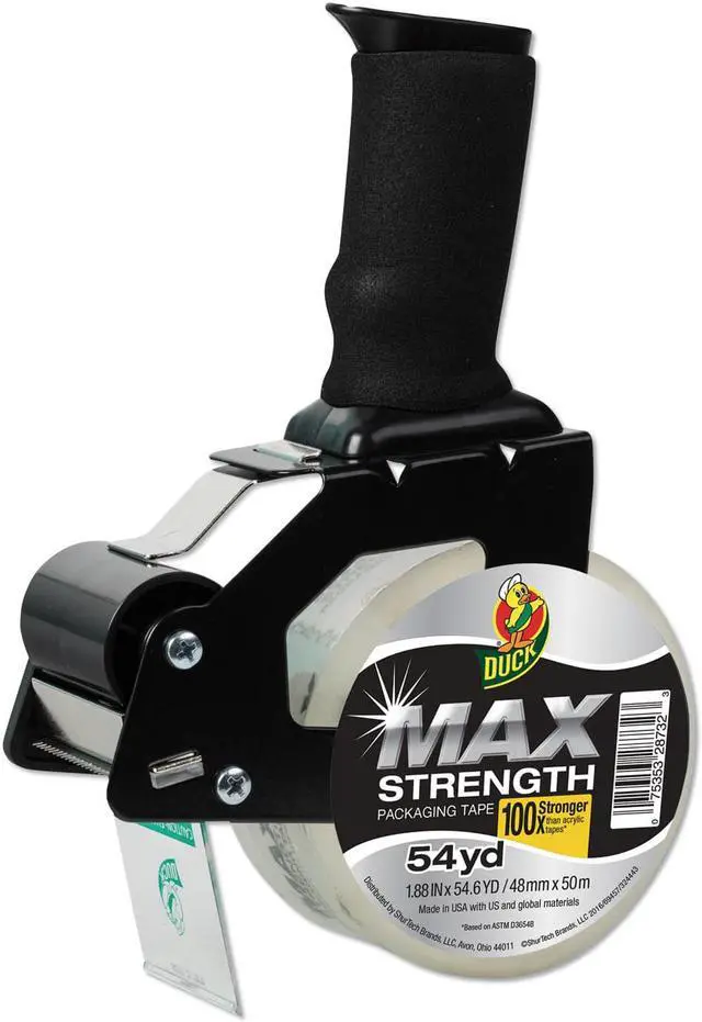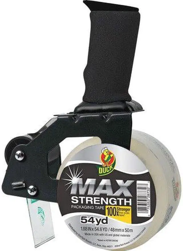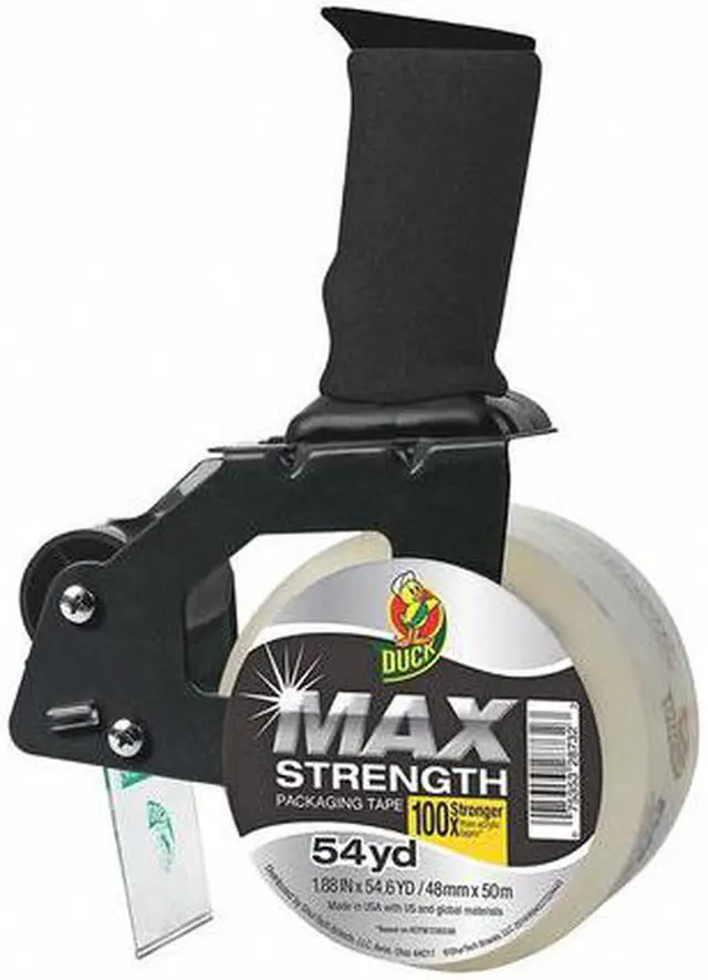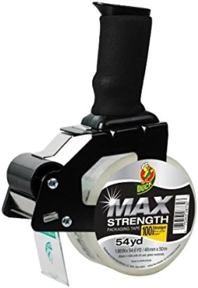 Duck 284984 Max Packaging Tape With Heavy-Duty Dispenser, 1.88 Inch X 54.6 Yds, 3 Inch Core, Clear