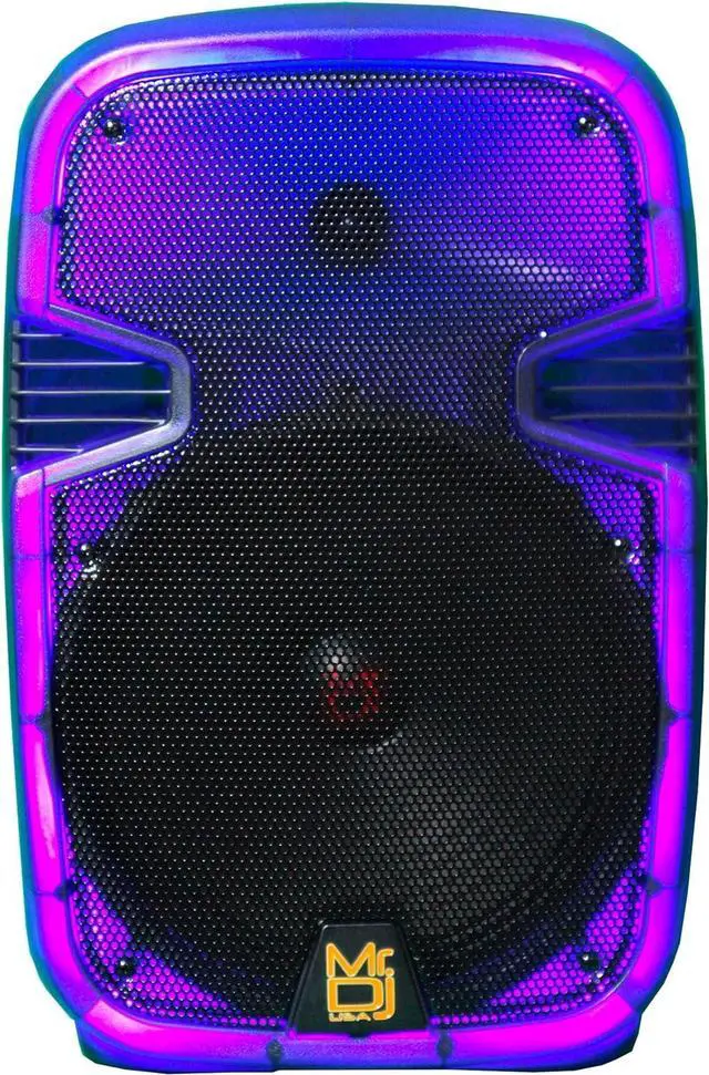 Introducing the MR DJ PL12FLAME 12" Portable Translucent Trolley PA DJ Active Powered Bluetooth TWS Speaker, a powerhouse of audio entertainment with a stunning 3000 Watts P.M.P.O output.