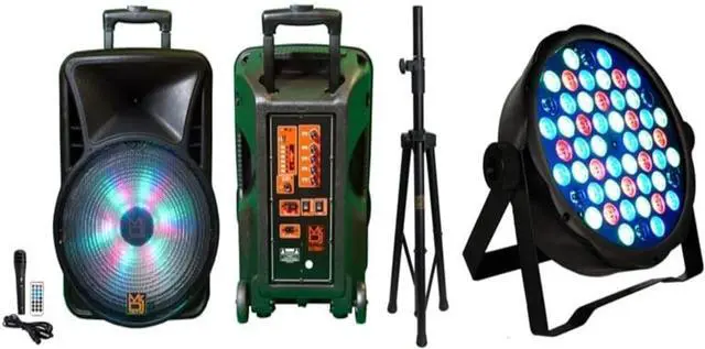 Featuring Bluetooth connectivity, USB card reader, FM radio, and RGB Party LED lights, it offers versatile options for streaming music from various devices, while the microphone input allows for karaoke fun.