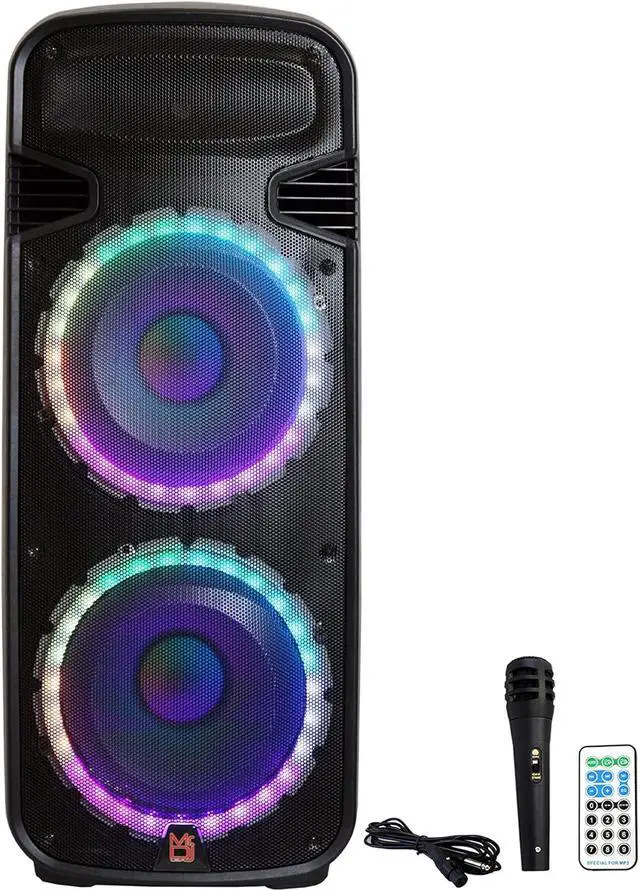 Product Contents 1 Portable Active Speaker, 1 Microphone with 10ft Cord, 1 Remote Control and Product Manual, 1 Power Cord