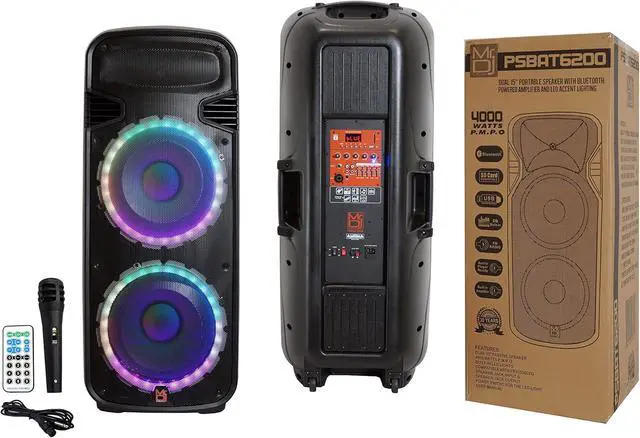Dual 15-Inch 5000 Watt Max Power 2 Way Speaker with Built-In Bluetooth & Battery/FM Radio/Graphic EQ/LCD/MP3/USB/SD, Bluetooth Technology