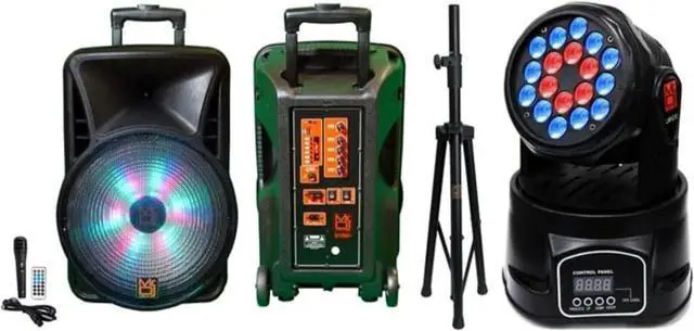 The MR DJ SS350 Speaker Stand and MR DJ LMH230 100W RGBW 18-LED Moving Head DJ Light complement the speaker perfectly, providing stability and enhanced lighting effects. The speaker stand features adjustable height settings, while the moving head DJ light delivers vibrant RGBW colors and dynamic movement, adding excitement to your performances.