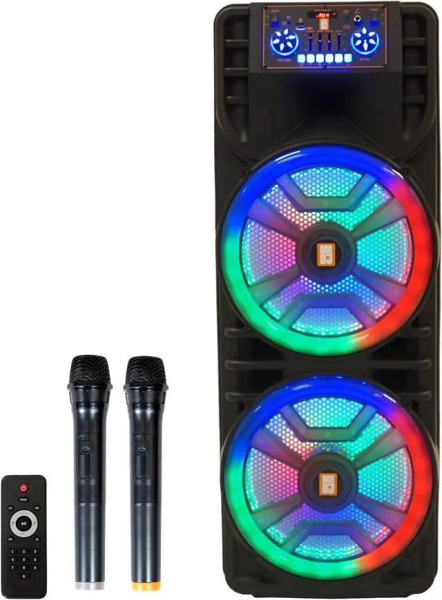 12" Rechargeable Portable Bluetooth Karaoke Speaker Party Flame Lights with 2 Wireless Microphone TWS USB FM Radio
