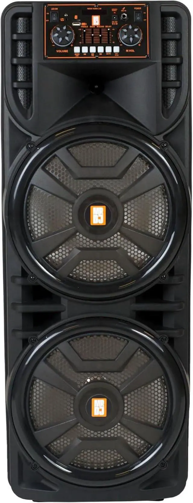 MR DJ NEWYORK2.0 12 X 2 Rechargeable Bluetooth Portable PA Party Speaker delivers 4000 Watts PMPO Max power, with TWS, flashing party flame lights, and multiple connectivity options. Ideal for parties and tailgates.