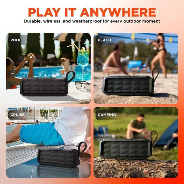 RUGGED DESIGN WITH IPX6 WATER RESISTANCE: Experience the power of the HyperGear Beast XL bluetooth radio. Designed to endure the elements, this loud bluetooth speaker is ideal for any adventure, from hiking to beach days. With its speaker box build, it handles splashes and light rain effortlessly. Works great as a pool bluetooth speaker, outdoor radio, portable bluetooth speaker, or bluetooth speaker outdoor.