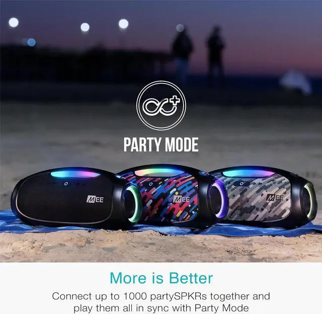 BLUETOOTH 5.3 + PARTY MODE : Advanced wireless technology with Bluetooth 5.3 provides reliable audio streaming while the party mode button lets you easily connect up to 1000 partySPKRs together and play them all in sync for an unparalleled sound experience that will take your parties to the next level!