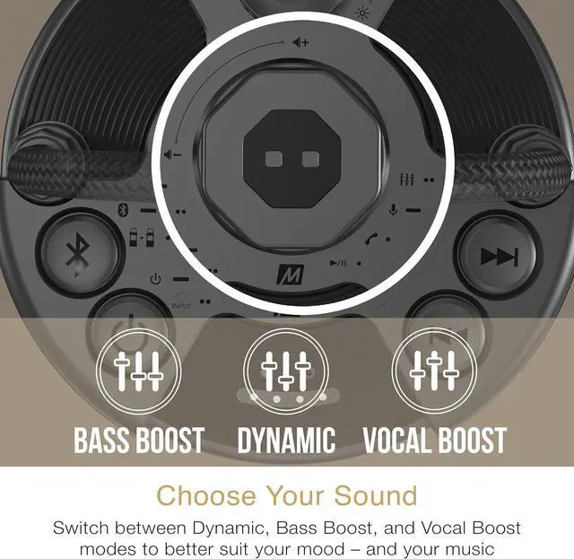 POWERFUL SOUND + 3 AUDIO MODES : 360° design radiates sound in all directions for indoor and outdoor use while three audio presets - Dynamic, Bass Boost, and Vocal Boost - let you further tailor the sound to better suit your mood - and your music!