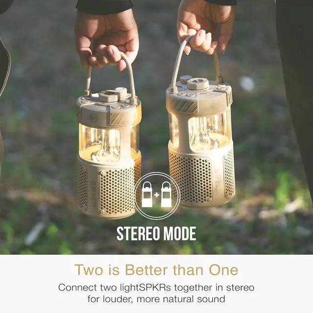 360° WIRELESS SPEAKER + BUILT-IN CAMPING LANTERN: The lightSPKR combines a powerful Bluetooth speaker with a dual-mode camping lantern so you can bring your soundtrack with you to the great outdoors. A dedicated control knob lets you easily adjust brightness & switch the color temperature of the lantern between warm yellow and bright white.