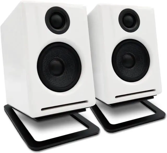 Audioengine A2 White Bluetooth Speakers and DS1M Metal Stands