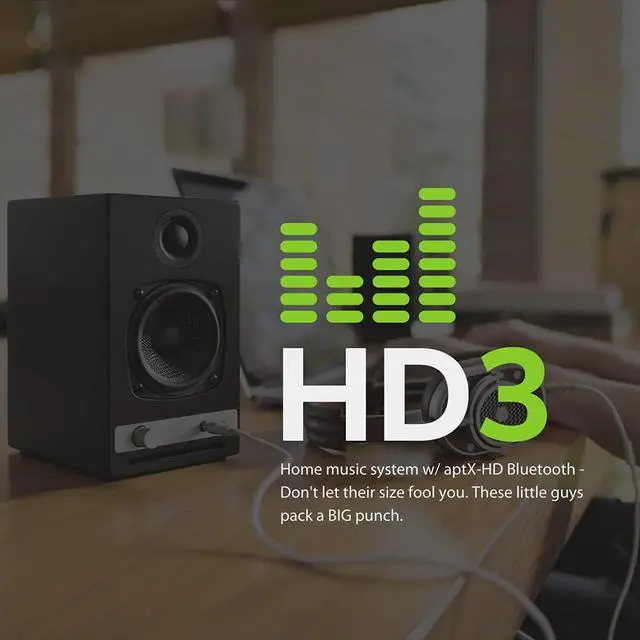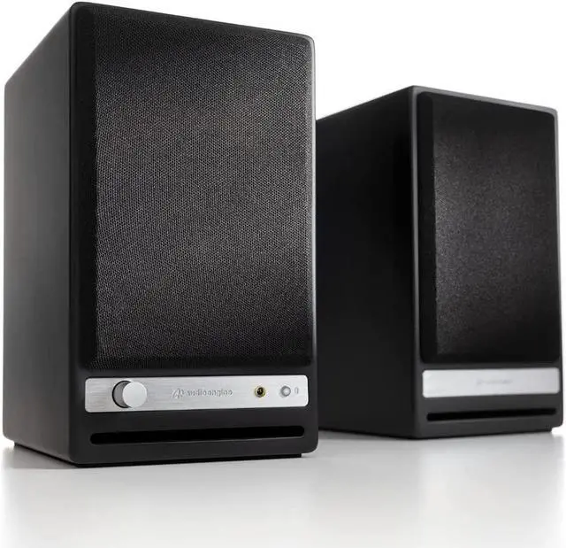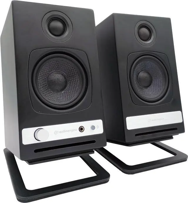 Audioengine A2 HD Black Wireless Desktop Speakers and DS1M Metal Stands