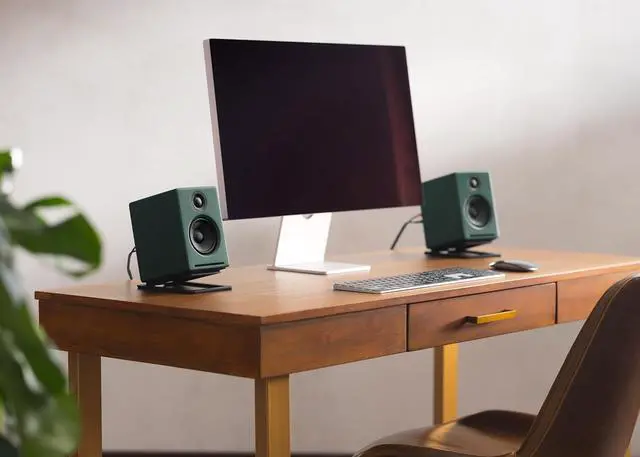 COMPACT SPEAKERS WITH PREMIUM SOUND A2+ Bluetooth computer speakers deliver crisp highs, detailed mids, and rich stereo sound in a compact design ideal for small desks and minimal setups.