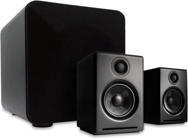 Audioengine A2 Black 24 Bit Pc Speakers for Desktop and S6 Black Subwoofer for Music Gaming Movies Studios Dorms Bedrooms Offices