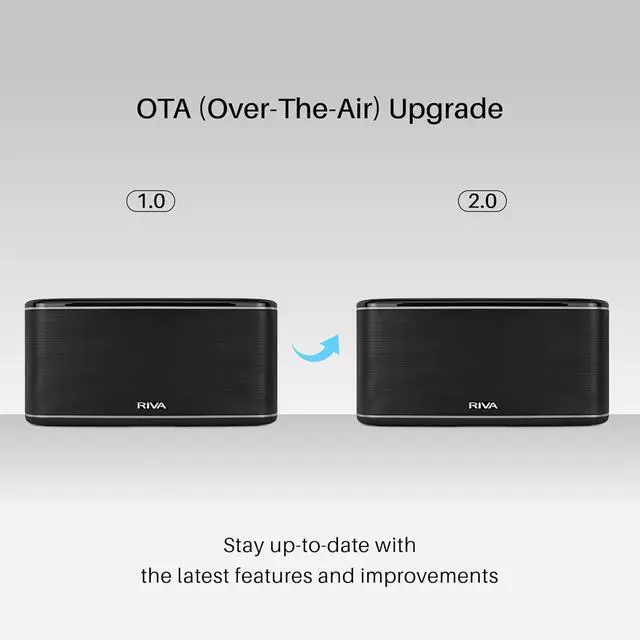 OTA Upgrade Support: Stay up-to-date with the latest features and improvements thanks to OTA (Over-The-Air) upgrade support. RIVA wifi speaker evolves with you, ensuring a continuously optimized performance that adapts to new technologies and user needs.