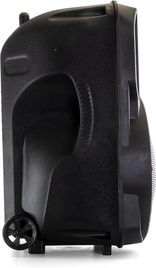 Get the good vibes going with the beFree Sound 12 inch portable part speaker. Bring it to any gathering or social event with its sturdy wheels and extendable handle for easy traveling. This all in one entertainment assistant is perfect for public speakers, motivational speakers, advertisers and DJs as well. With the large variety of outputs, the party never stops! Plug in some RCA cables into your classy stereo system to amplify the sound. Enjoy some AM or FM radio and listen to your favorite shows out loud. Bring a USB flash drive or TF card as a back up music provider. Relax with friends and take turns passing the AUX around to show off newly discovered tracks. Wirelessly run music through the speaker with innovative Bluetooth technology. Don't be restricted by any cables, play straight from of your phone. Whether you're a bass line junkie or a treble head, enjoy your sound the way you want to hear it with bass and treble equalizer knobs. Turn on the party lights and get a rave going as the reactive LED lights put on a show. Comes with a microphone for public speakers and presenters who need their voice to be heard. This sound system is suitable for out door events thanks to the rechargeable battery. One full charge can last up to 3 hours. Use the remote to help control sound levels. Move some bodies with the 12 inch woofer and its power punch of sound. Even the wall flowers can enjoy the music from a far!