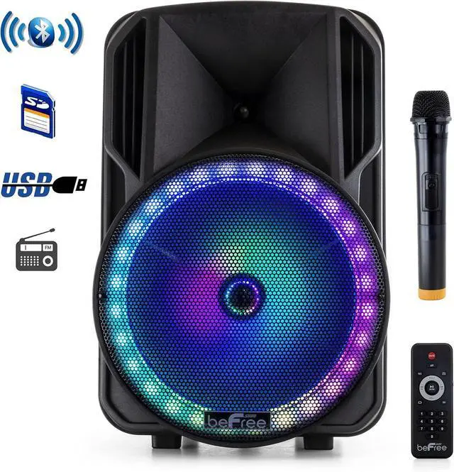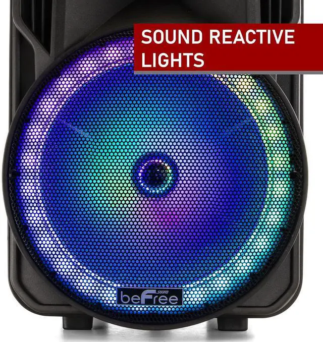 beFree Sound 12 Inch Bluetooth Rechargeable Portable PA Party Speaker with Reactive LED Lights Black