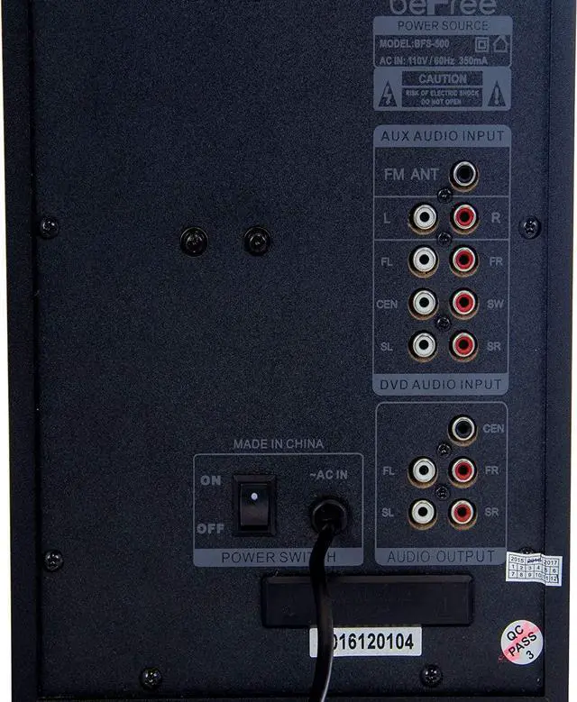 Bluetooth, USB, SD memory card compatible FM Radio Output Power: 50W Sub-woofer, 15W per speaker x 5 (125W total) Frequency Response: 40Hz-20KHz Separation: >50dB