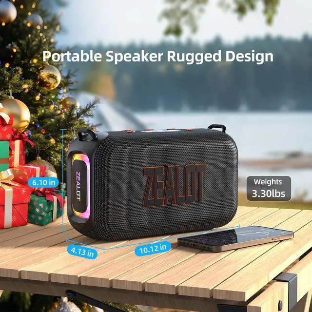 IPX6 Waterproof & Dustproof: Don't get trpeed in the cities. Go out to the forest & mountains to relax with ZEALOT waterproof outdoor speakers. It's IPX6 rated waterproof speaker with dustproof and anti-slip design., 3.30lbs lightweight. No matter where you are, you'll never be alone. It can be the great pal for camping, hiking, BBQ, road trip.