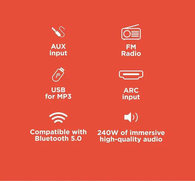 Powerful Sound: Experience rich, immersive audio with 240 Watts of output power.