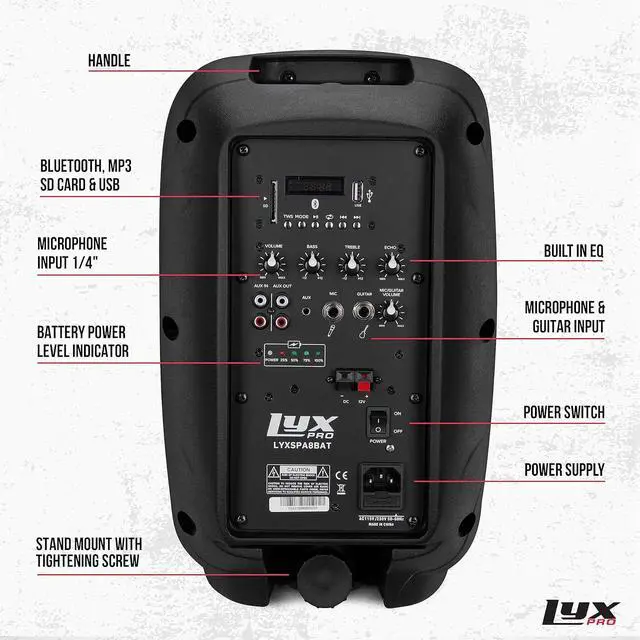 Powerful 70 Watt Active Pa Rechargeable Self-Powered Battery Speaker Woofer System. LyxPro Spa-8 Battery Speaker Comes Built-In With A Professional Self-Powered 8 Inch Real 70 Watt Powerful Active Dj/Pa Amplifier Woofer System Power Split 70-Watt Lf & 30-Watt Hf