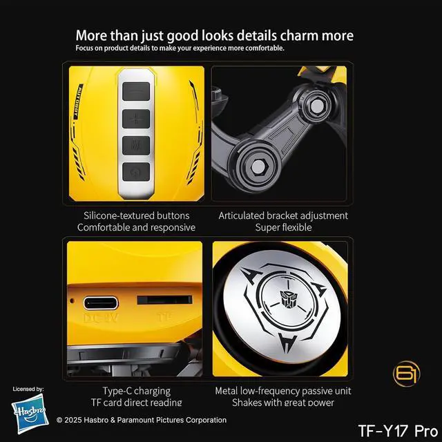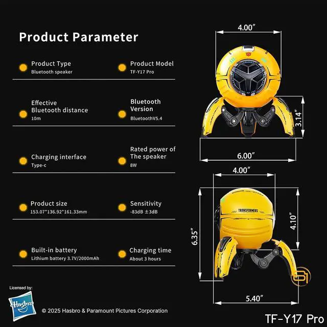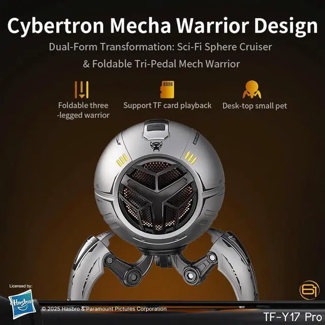 Unleash a new era of immersive sound with the Transformers TF-Y17Pro Mecha Bluetooth TWS Speakera futuristic fusion of sci-fi engineering, powerful audio performance, and collectible mecha design. Built for gamers, desk enthusiasts, and lifestyle creators, this compact 10W speaker transforms any setup into a cinematic sound arena. Featuring a master-tuned Hi-Fi 57mm driver, the TF-Y17Pro delivers crisp highs, dynamic mids, and deep, punchy bass. Activate TWS pairing to link two units for a wider, more immersive stereo fieldperfect for gaming, streaming, music, or desk atmospheres. Its dual-form mecha design shifts between a sleek Cybertron-inspired sphere cruiser and a foldable tri-pedal warrior stand, giving it both stability and display-worthy aesthetics. With RGB lighting, TF card playback, hands-free calls, and a long-lasting 2,000mAh battery, this speaker is engineered for all-day performance. Compact, portable, and visually striking, the TF-Y17Pro redefines what a desktop speaker can bea mini companion, a gaming prop, and a premium lifestyle collectible, all in one.