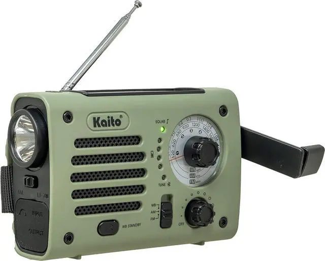 Stay connected during emergencies with our 5-way powered portable emergency radio. It features a hand crank generator, solar panel, compartment for 3 AAA batteries (not included), 5V USB-C input (USB cable included), and built-in Li-ion rechargeable battery pack