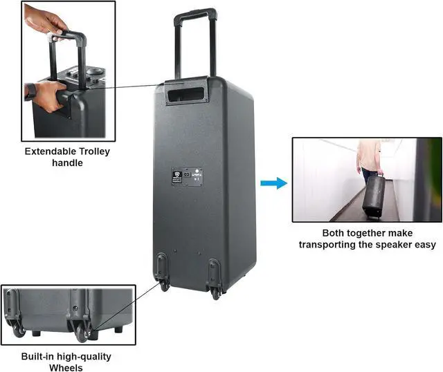 Portable & Party-Ready: A rugged ABS/wood cabinet with built-in wheels and a trolley handle makes the ELITE PARTY 65 easy to transport. The 11.1V 12AH battery delivers up to 12 hours of playtime, so your party goes wherever you gono outlets required.