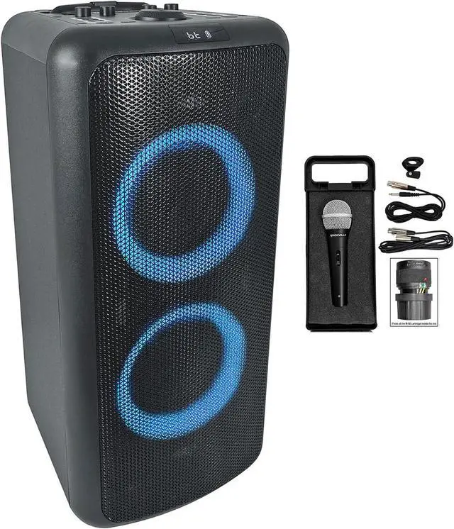 Package Includes: (1) Rockville ELITE PARTY 65 Bluetooth Party Speaker Extremely Loud, Karaoke Effects, (1) Rockville RMC-XLR High-End Metal DJ Handheld Wired Microphone Mic with XLR to XLR and XLR to ¼ Cables, Mic Clip, and Carry Case