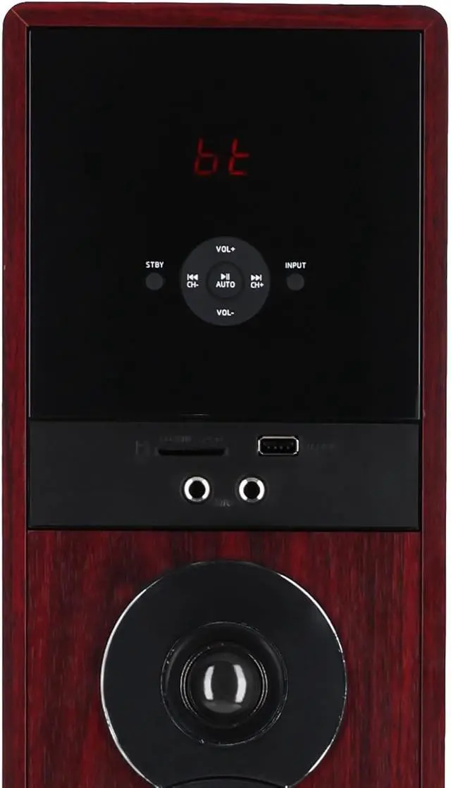 Built in 8 band equalizer with preset equalizer curves. Adjustable bass and treble. Built in high and low pass crossovers professionally tuned by audio engineers for top performance. Cabinet material: Top quality MDF (0.472 inch thick high-grade MDF). (2) pairs of RCA inputs. (1) 3.5MM aux input. (1) Optical input. Front panel UB and SD inputs. (2) Mic inputs for karaoke (with echo control and mic volume control). (2) RCA outputs make the system expandable