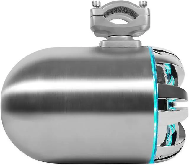 Led Wakeboard Speakers With Marine-Grade Build: The WB65KLED speakers feature a 6.5 long-excursion woofer and titanium dome tweeter housed in a polished stainless steel shell. Rated at 150-Watts RMS each, with rubber surrounds, UV-resistant aluminum brackets, and 360° rotation for perfect positioning.