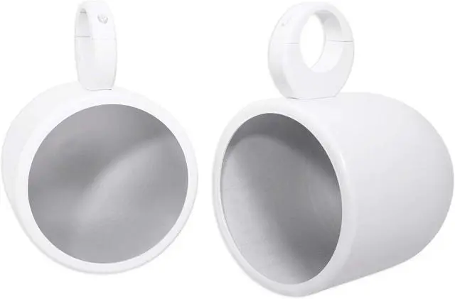 Ready To Install Pack: Pack of 2 pods with cans, clamps, inserts, and hardware; point sound toward the rider or sandbar crowd for wide coverage.