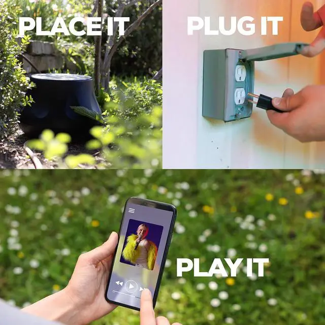 Built-in Bluetooth amplifier powers the subwoofer and two additional outdoor speakers (not included) - no external amp needed
