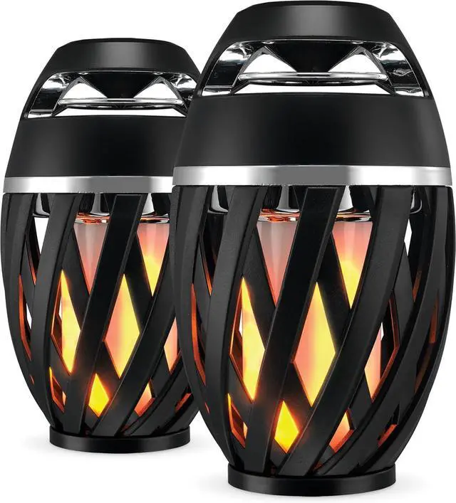 • Special party pack: includes 2 speakers with simulated flame light, stakes and mounting options