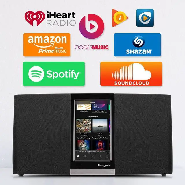 STREAMING MUSIC AND THOUSANDS OF RADIO STATIONS Whether through Pandora, Tune-In, IHeartRadio, Spotify, or any of the many additional streaming music and internet radio apps available, you can listen to a variety of music genres, talk radio, sports, and much once the radio has a Wi-Fi connection.