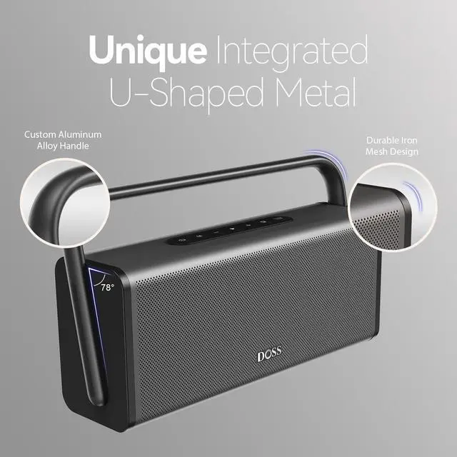 Stylish Design: Featuring a unique U-shaped metal design and a streamlined profile, this speaker not only delivers impressive sound but also elevates your decor, seamlessly blending in on counters or bookshelves. Built with sturdy iron mesh and a sleek aluminum alloy handle, it offers durability and easy portability, making it easy to carry around the space, from your living room, backyard, or outdoor gatherings.