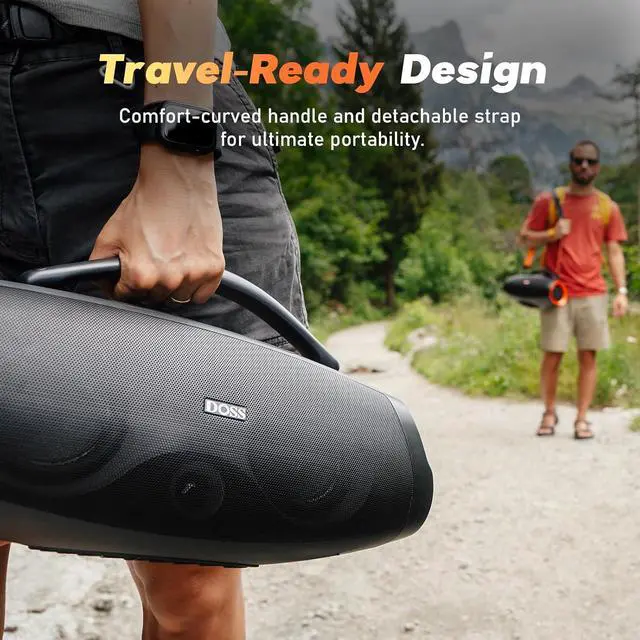 IPX6 Waterproof: Engineered to withstand powerful water jets and sudden downpours, the DOSS Extreme Boom Pro D200 survives intense splashes at pool parties, beach outings, and wilderness adventures. With its built-in handle and removable strap, this portable speaker is your ultimate audio companion for any journey.