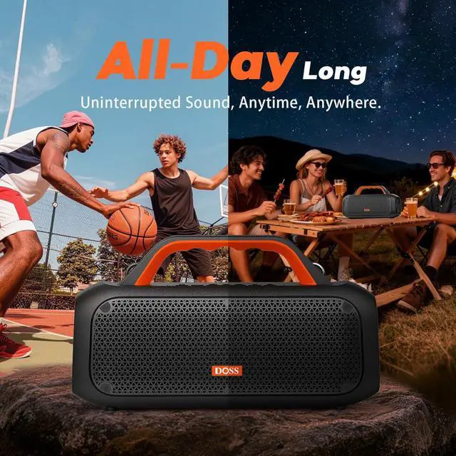 Portable Handle Design: With a built-in handle and a flexible strap, the DOSS Extreme Boom portable speaker gives you an extra grip to carry your outdoor soundtracks anywhere.